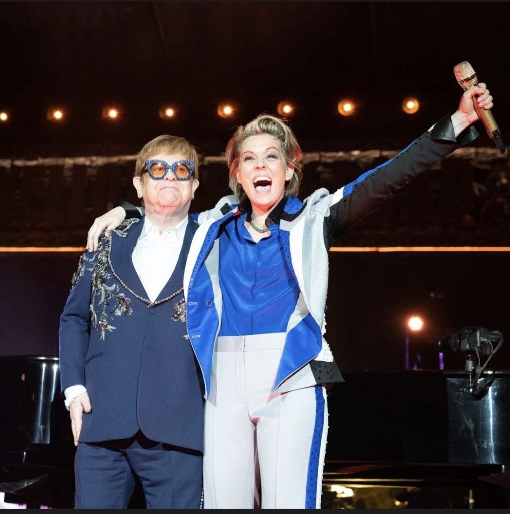 They sang a duet of “Don’t Let the Sun Go Down on Me” and let me tell you that it was AMAZING – I became an instant Brandi super fan hearing her sing LIVE because not only are her vocals amazing but the energy and spirit she brings to a live performance are awesome! I was lucky enough to be just a few standing rows back from the stage at this concert and I could see and feel the absolute JOY exuding from her as she sang with Elton. It was amazing to witness!
